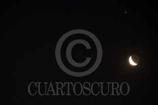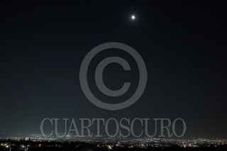 CUERNAVACA, MORELOS, 18MARZO2020.- Durante la madrugada la Luna y los planetas Marte, Júpiter y Saturno, protagonizaron un espectáculo celeste: una conjunción cuádruple. La Luna en su fase menguante, iluminada en un 30 por ciento, permitió la observación de los tres planetas a su alrededor. FOTO: MARGARITO PÉREZ RETANA /CUARTOSCURO.COM