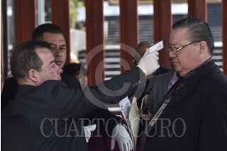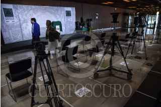 CIUDAD DE MÉXICO, 17MARZO2020.- Los lugares para los medios de comunicación en la zona de conferencia se colocaron separados como medida de prevención ante el coronavirus (covid-19). FOTO: MARIO JASSO /CUARTOSCURO.COM