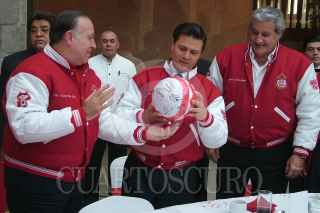 Toluca Estado de México 09ENERO2006 .- El equipo de futbol Toluca convivio con el gobernador del Estado de México Enrique Peña Nieto en la casa de Gobierno por el octavo campeonato de futbol mexicano. FOTO:Noé Marure/CUARTOSCURO.COM