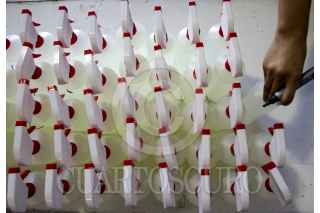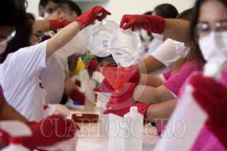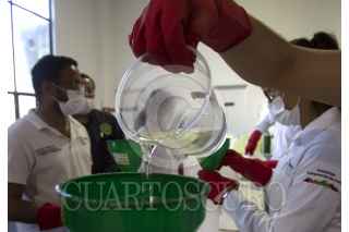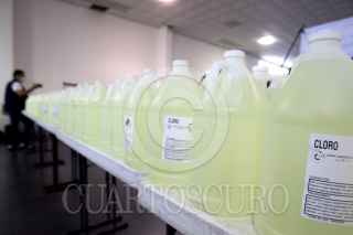 GUADALUPE, NUEVO LEÓN, 18MARZO2020.- Voluntarios realizan envasado de gel antibacterial y cloro que será repartido entre la ciudadanía de manera gratuita ante el incremento de casos de coronavirus en Nuevo León. FOTO: GABRIELA PÉREZ MONTIEL / CUARTOSCURO.COM