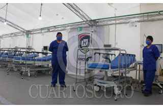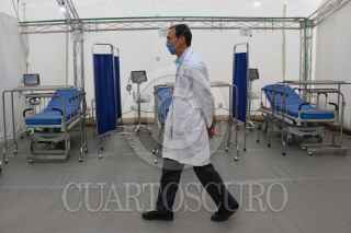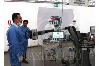 PACHUCA, HIDALGO, 18MARZO2020.- Omar Fayad, gobernador de Hidalgo, durante el recorrido del Hospital Inflable instalado en la explana de la Plaza Bicentenario esto antes la contingencia Mundial por el COVID-19. Cabe mencionar que en dicho estado aún no se tiene confirmado ningún paciente con el virus. FOTO: ROGELIO MORALES /CUARTOSCURO.COM