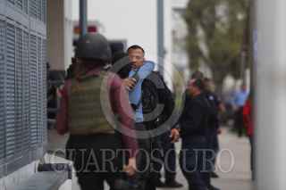 CIUDAD JUÁREZ, CHIHUAHUA, 18MARZO2020.- Se reportó un ataque en contra de elementos de la Comisión Estatal de Seguridad. La agresión se perpetró en el cruce de los bulevares Talamás Camandari y Mesa Central, lo que desató una balacera entre policías y sicarios donde murió un agente y dos presuntos delincuentes. También fueron atacados agentes de la secretaría de seguridad publica por hombres armados quienes dispararon contra los agentes en diferentes hechos. El primer ataque fue en la avenida 16 de septiembre y Bolivia en donde se encuentran las instalaciones del Gas Natural le dispararon a un agente que estaba servicio en el lugar, cuando era trasladado a recibir atención medica al hospital, los sicario le dieron alcance y remataron al policía cuando paramédicos lo bajaban en las puertas de emergencia del hospital general, resultando herido un paramédico que le prestaba auxilio al agente. El segundo ataque ocurrió en el cruce de la avenida Belisario Dominguez cruce con articulo 57 donde agentes municipales repelieron la agresión saliendo uno de ellos herido y siendo trasladado por su mismos compañeros a recibir atención médica. El tercer ataque se registró en las calles Oro y 16 de Septiembre donde se encuentra la Estación de Policía Distrito Centro. FOTO: NACHO RUIZ/CUARTOSCURO.COM