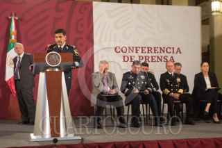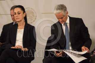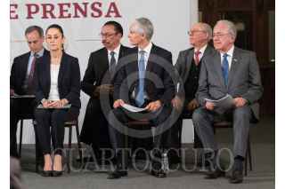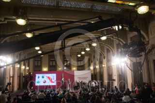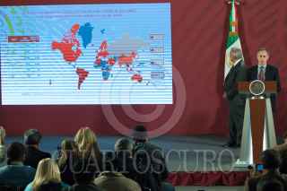 CIUDAD DE MEXICO. 19MARZO2020.- Esta mañana en la conferencia del Presidente Andrés Manuel López Obrador, hablo de dos temas el Covid 19 y la construcción del aeropuerto de Santa Lucía. Lo acompañaron secretarios y los gobernantes de la Ciudad de México, Claudia Sheinbaum y el del Estado de México, Alfredo del Mazo. Este evento tiene lugar en el Palacio Nacional. FOTO: VICTORIA VALTIERRA/CUARTOSCURO.COM