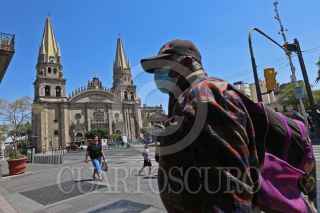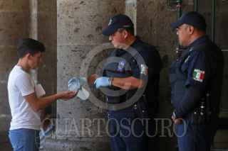 GUADALAJARA, JALISCO, 19MARZO2020.- A pesar de la alerta sanitaria que existe en México por la problemática de salud que genera el Covid 19, en el centro de la ciudad todavía se pueden apreciar muchos tapatíos transitando por el mismo y en algunas dependencias de gobierno toman medidas de prevención del coronavirus, como colocar gel antibacterial a la entrada, en este caso en la Presidencia Municipal. FOTO: FERNANDO CARRANZA GARCIA / CUARTOSCURO.COM