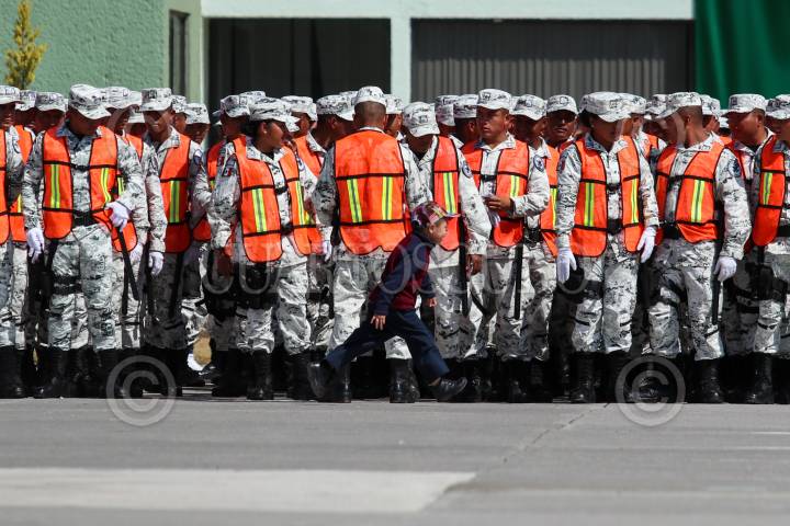 SAN MIGUEL DE LOS JAGÜEYES, ESTADO DE MÉXICO, 19MARZO2020.- El presidente Andrés Manuel López Obrador encabezó la Ceremonia de Clausura del 4º Escalón del curso de formación inicial para la integración de la Guardia Nacional. En compañía de los representantes de la SEDENA; Marina; Seguridad Pública; Gobernación, así como del comandante de la Guardia Nacional y el gobernador del Estado de México, el jefe del ejecutivo destacó la labor de las fuerzas armadas y llamó a los nuevos elementos a no aceptar “propuestas indecorosas” del crimen organizado. FOTO: GALO CAÑAS /CUARTOSCURO.COM