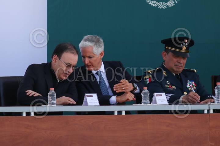 SAN MIGUEL DE LOS JAGÜEYES, ESTADO DE MÉXICO, 19MARZO2020.- El presidente Andrés Manuel López Obrador encabezó la Ceremonia de Clausura del 4º Escalón del curso de formación inicial para la integración de la Guardia Nacional. En compañía de los representantes de la SEDENA; Marina; Seguridad Pública; Gobernación, así como del comandante de la Guardia Nacional y el gobernador del Estado de México, el jefe del ejecutivo destacó la labor de las fuerzas armadas y llamó a los nuevos elementos a no aceptar “propuestas indecorosas” del crimen organizado. FOTO: GALO CAÑAS /CUARTOSCURO.COM