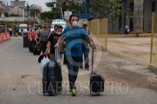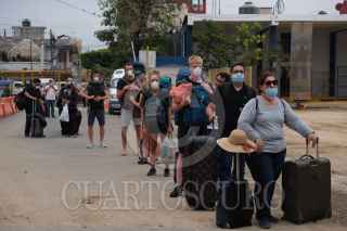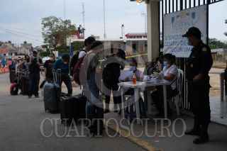 TECUN UMAN, GUATEMALA, 19MARZO2020.- Turistas mexicanos e internacionales fueron asistidos por sus respectivas embajadas para salir del país de Guatemala e ingresar a Mexico para tomar un avión y regresar a sus lugares de origen ya que el aeropuerto guatemalteco se encuentra cerrado debido a la contingencia por el Covid-19. El aeropuerto de Tapachula es la única opción que tienen los turistas para salir por vía aérea. FOTO: ISABEL MATEOS /CUARTOSCURO.COM