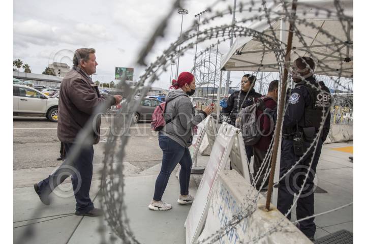 TIJUANA, BAJA CALIFORNIA, 20MARZO2020.- Un filtro sanitario para la detección de COVID-19 fue abierto en las inmediaciones del cruce peatonal de la garita de San Ysidro por parte del sector médico privado, esto ante la emergencia sanitaria que afecta a la mayor parte del mundo. El puerto fronterizo registró este día largas filas para cruzar, tras el anuncio del presidente estadounidense Donald Trump de cerrar la frontera con México y permitir solo cruces esenciales, por cuestiones médicas, militares e industriales. La imagen muestra la instalación de códigos QR donde los ciudadanos pueden conseguir información mediante su teléfono móvil. FOTO: OMAR MARTÍNEZ /CUARTOSCURO.COM