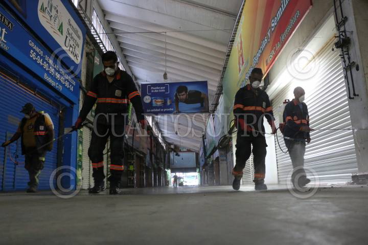 CIUDAD DE MÉXICO DE MÉXICO, 20MARZO2020.- Personal especializado en conjunto con trabajadores de la Central de Abastos realizan trabajos de limpieza y esterilización en distintos sectores de la central, esto como medidas preventivas para evitar el contagio del COVID-19. FOTO: ROGELIO MORALES /CUARTOSCURO.COM