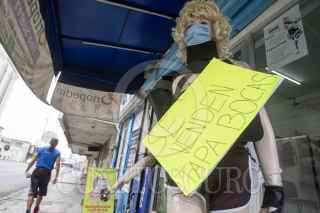 MONTERREY, NUEVO LEÓN, 21MARZO2020.- Un maniquí porta un tapabocas afuera de un negocio de productos ortopédicos. FOTO: GABRIELA PÉREZ MONTIEL / CUARTOSCURO.COM