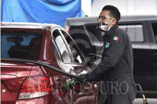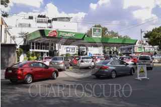 CIUDAD DE MÉXICO, 21MARZO2020.- El precio de gasolina en avenida Plutarco Elías Calles y Eje 8 Sur se encuentra en $15.24 pesos por litro para magna, y $15.74 pesos para premium, lo que ha ocasionado que personas formen filas para poder adquirirla. FOTO: MARIO JASSO /CUARTOSCURO.COM