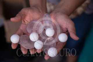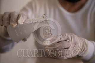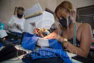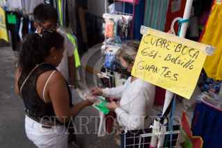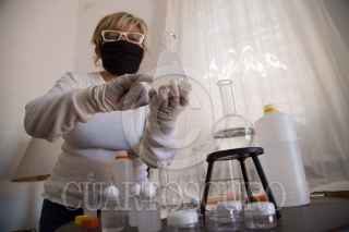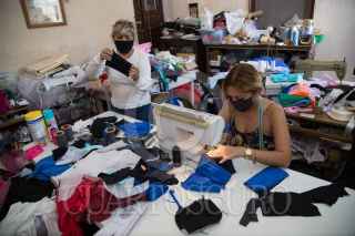 MÉRIDA, YUCATÁN, 21MARZO2020.- Debido al desabasto y al alto costo de los cubre bocas y gel antibacterial en algunas farmacias de la entidad, la señora y comerciante Bertha Ortega Ramírez, quien además es egresada de la Facultad de Ingeniería Química de la Universidad Autónoma de Yucatán (UADY) desde hace 36 años y su hija Ivonne López Ortega, de profesión Diseñadora de Moda con especialización en Alta Costura, fabrican Gel Casero y Cubre Bocas mismos que llevan a vender a las afueras del mercado Lucas de Gálvez. Ortega Ramírez comenta que iniciaron con la producción desde que se dio a conocer el primer caso de coronavirus en el estado y han vendido más de 300 recipientes de gel y cientos de cubre bocas. La preparación del Gel es a base de 80 % alcohol, humectante de glicerina y un compuesto que le da la consistencia para después envasarlos en pequeños recipientes de bolsillo, su valor en el mercado es de $10.00 por otra parte, su hija confecciona los cubre bocas mismos que son elaborados con tela de algodón para que puedan reutilizarlos después de lavarlos y desinfectarlos y su precio es de $20.00. FOTO: MARTÍN ZETINA/CUARTOSCURO.COM