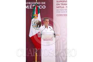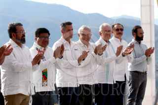 SAN PABLO VILLA DE MITLA, OAXACA, 21MARZO2020.- Andrés Manuel López Obrador, Presidente de México, encabezó la supervisión de obra en tramo carretero Mitla-Tehuantepec. Lo acompañaron Alejandro Murat Hinojosa, gobernador del estado, y Javier Jiménez Espriú, secretario de Comunicaciones y Transportes. FOTO: PRESIDENCIA/CUARTOSCURO.COM