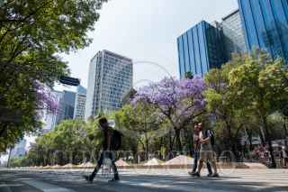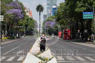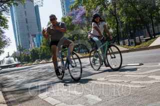 CIUDAD DE MÉXICO, 22MARZO2020.- Avenida Reforma tradicionalmente atestada de personas que participan en el paseo ciclista de cada domingo, este día lució semivacío, debido a la reducción de actividades que convoquen a muchas personas como media preventiva ante la propagación del Covid-19, que tan solo ayer registró más de 200 casos. FOTO: MOISÉS PABLO/CUARTOSCURO.COM