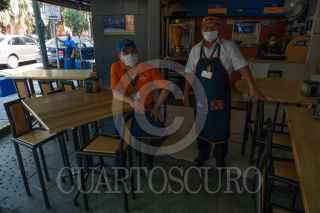 CIUDAD DE MÉXICO, 23MARZO2020.- Tras el anunció de las autoridades capitalinas de el cierre de lugares como bares, gimnasios y cines, como medida preventiva para evitar la propagación del Covid-19, zonas como el centro y la colonia Condesa a resentido una baja en la actividad comercial, restaurantes se observan semi vacíos. FOTO: MOISÉS PABLO/CUARTOSCURO.COM