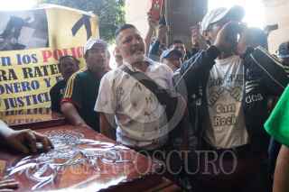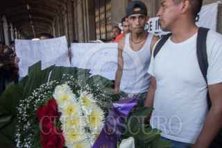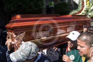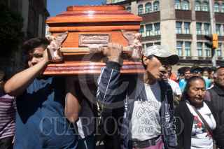CIUDAD DE MEXICO. 23MARZO2020.- Comerciantes llamados "Vagoneros", se manifestaron esta mañana frente al Gobierno de la Ciudad, con un féretro el cual tenía un compañero, que según los protestantes fue muerto a manos de la policía. FOTO: VICTORIA VALTIERRA/CUARTOSCURO.COM