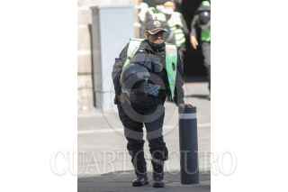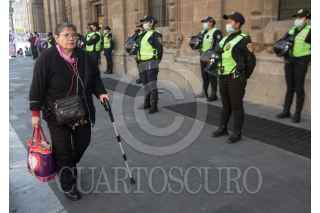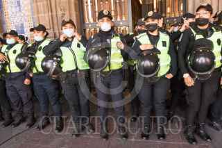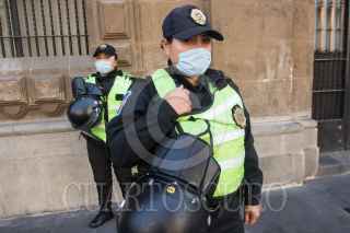 CIUDAD DE MEXICO. 23MARZO2020.- Mujeres policías que resguardan el Antiguo Palacio del Ayuntamiento, donde despacha la jefa del Gobierno, Claudia Sheinbaum, recibieron cubrebocas para su protección. FOTO: VICTORIA VALTIERRA/CUARTOSCURO.COM