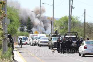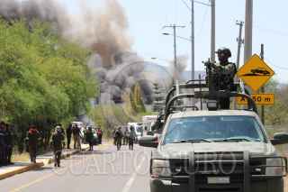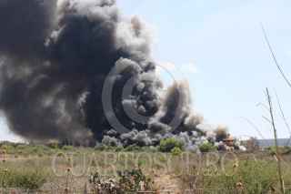 CELAYA, GUANAJUATO, 24MARZO2020.- Un fuerte incendio se registró en una centro de Acopio de refrigeradores y aires acondicionado, en la comunidad de Santa María del Refugio. Los hechos ocurrieron al medio día cuando se reportó el incendio en la empresa denominada "Ecofrigo", que se encuentra en la carretera Celaya-Salvatierra, kilómetro 120. En el percance se reportan varios heridos y, al aparecer, muertos. Los Bomberos y Protección Civil trabajan en el lugar para determinar el número de víctimas. En el centro de acopio almacenaban material conocido como poliuretano. FOTO: DIEGO COSTA /CUARTOSCURO.COM