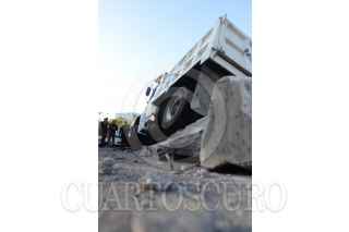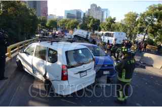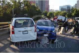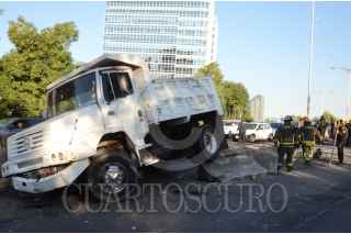 CIUDAD DE MÉXICO, 25MARZO2020.- Esta mañana un camión torton que circulaba sobre la avenida Río San Joaquín y avenida Legaria, colonia Pensil, en la alcaldía de Miguel Hidalgo, perdió el control y se estrelló contra el muro que divide los carriles proyectándose contra con tres vehículos que circulaban en el sentido contrario dejando un un saldo de cuatro heridos que fueron atendidos por la Cruz Roja. FOTO: ARMANDO MONROY/CUARTOSCURO.COM