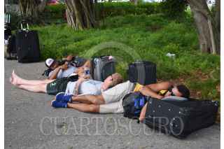 CANCÚN, QUINTANA ROO, 25MARZO2020.- Cientos de turistas se encuentran varados en el Aeropuerto Internacional de Cancún, Quintana Roo, en espera de un vuelo para retornar a sus países, aunque muchos de ellos aún permanecen cerrados por la contingencia para detener el avance del Covid-19. Argentinos, colombianos, brasileños, chilenos, peruanos y cubanos son algunos de los que turistas que esperan un vuelo para regresar a sus países mientras tanto pernoctan a los alrededores del aeropuerto. FOTO: ELIZABETH RUIZ/CUARTOSCURO.COM
