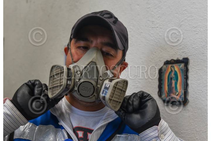 La sanitización de autobuses foráneos en la Terminal de Autobuses de Toluca se realiza por un procedimiento en donde se utiliza un aspersor y un nebulizador que se rocía en asientos y el compartimiento de maletas una fórmula a base de amonios, esto como medidas de prevención ante la pandemia de COVID-19. FOTO: CRISANTA ESPINOSA AGUILAR /CUARTOSCURO.COM