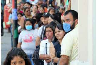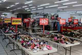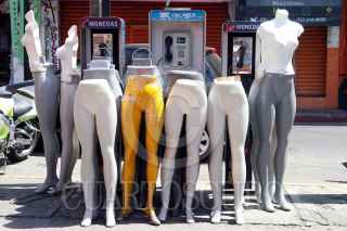 CUERNAVACA, MORELOS, 25MARZO2020.- Ante la fase dos de la emergencia sanitaria por el COVID-19 en la capital del estado, ya se vuelve cotidiana la imagen de personas que usan cubre bocas, también negocios con filas para entrar en pequeños grupos, zapaterías que ofrecen descuentos a clientes inexistentes o maniquíes desnudos esperando junto a casetas telefónicas. La Secretaría de Salud del Estado prevé que el punto más alto de contagios por coronavirus podría originarse a finales del mes de abril con un estimado máximo de 11 mil personas y el mínimo de cinco mil. Hasta hoy se tienen dos casos confirmados, 23 sospechosos y 24 descartados. FOTO: MARGARITO PÉREZ RETANA /CUARTOSCURO.COM