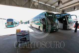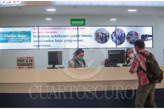 En la Terminal de autobuses de Toluca la línea Ómnibus de México informó que q partir de hoy se suspendían los servicios con destinos internacionales norte a sur y viceversa, se continúa con las medidas preventivas ante COVID-19, y con letreros en diversos puntos de informa a los usuarios acerca de las medidas sanitarias. FOTO: CRISANTA ESPINOSA AGUILAR /CUARTOSCURO.COM