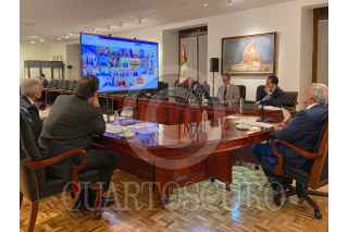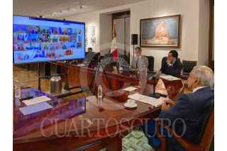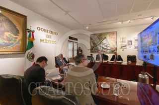 CIUDAD DE MÉXICO, 26MARZO2020.- El Jefe del Ejecutivo, Andrés Manuel López Obrador, participó en la Cumbre Virtual de Líderes del G20, para analizar las medidas a tomar ante la propagación de la pandemia de Covid-19. Lo acompañaron Marcelo Ebrard, secretario de Relaciones Exteriores; Arturo Herrera Gutiérrez, secretario de Hacienda y Crédito Público; Julián Ventura Valero, subsecretario de Relaciones Exteriores, y Hugo López-Gatell Ramírez, subsecretario de Prevención Promoción de la Salud. El encuentro se realizó en el Palacio Nacional. FOTO: PRESIDENCIA/CUARTOSCURO.COM