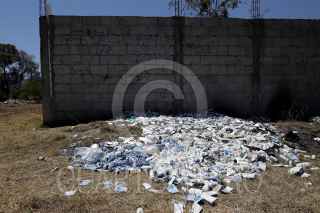 AMOZOC, PUEBLA, 26MARZO2020.- Abandonan lote de medicina caduca en terreno baldío de San Salvador Chachapa, junta auxiliar del municipio de Amozoc, vecinos aseguran que trabajadores de la Clínica de la localidad fueron a tirarla. FOTO: MIREYA NOVO/CUARTOSCURO.COM