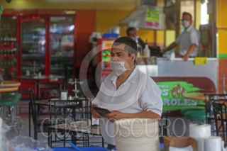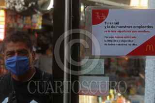 GUADALAJARA, JALISCO, 26MARZO2020.- Restaurantes de diversas cadenas ubicados en el centro de la ciudad, lucen vacíos pero cumplen con las reglas sanitarias para operar durante la cuarentena y evitar la propagación del coronavirus (Covid-19) en el estado. FOTO: FERNANDO CARRANZA GARCIA / CUARTOSCURO.COM