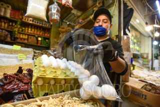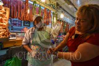 Con medidas preventivas ante la contingencia por COVID-19 el Mercado 16 de Septiembre mantiene sus puertas abiertas en las áreas de comida, frutas y legumbres, carnicería, abarrotes ofreciendo a la población sus productos para que puedan continuar la cuarentena, ofreciendo precios económicos en todos sus productos; después de que en el Estado de México fuera anunciado el cierre de negocios que no estuvieran relacionados con alimentos o medicinas. FOTO: CRISANTA ESPINOSA AGUILAR /CUARTOSCURO.COM