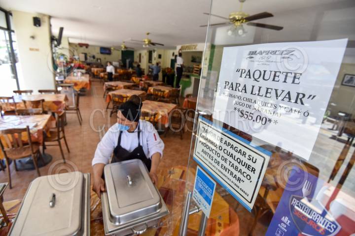 Negocios que se dedican a la venta de comida como restaurantes, cafeterías, fondas y loncherías ya solo tienen servicio para llevar, esto ante las medidas de prevención por COVID-19 que se han implementado en el Estado de México. FOTO: CRISANTA ESPINOSA AGUILAR /CUARTOSCURO.COM