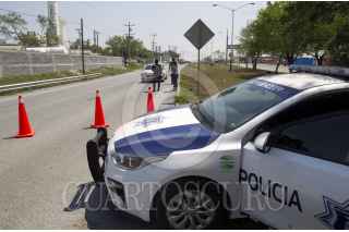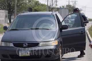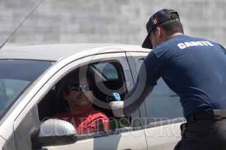 CADEREYTA, JIMÉNEZ, NUEVO LEÓN, 28MARZO2020.- Policía local del municipio de Cadereyta, realizan un cerco sanitario aleatorio a automovilistas en la autopista Monterrey-Reynosa, para tomar la temperatura corporal y registrar datos de viaje reciente a Estados Unidos. Hasta el momento, Cadereyta no registra personas contagiadas de covid-19 a pesar de su cercanía al área metropolitana de Monterrey. FOTO: GABRIELA PÉREZ MONTIEL / CUARTOSCURO.COM