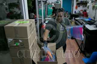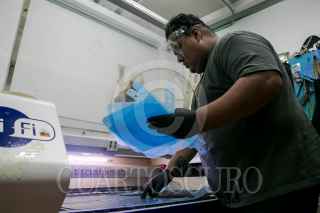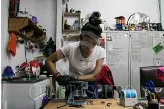 CIUDAD DE MÉXICO, 28MARZO2020.- “Una gran familia que está haciendo cosas por otras personas” así lo describe Fátima Álvarez, maker; cofundadora de y esposa de Mark Escobedo, coordinador de corte láser en la Ciudad de México, y quienes desde el pasado 20 de marzo comenzaron con la creación de mascarillas protectoras de PET para luchar contra el contagio de Coronavirus Covid-19. Unidos en una misma casa y por una misma causa, la pareja y sus roomies realizan el ensamble, pieza por pieza, de las caretas. La idea nació de la coordinación con la red de makers españoles e italianos, localidades que son focos rojos dentro de la emergencia global, quienes compartieron sus diseños para la reproducción en nuestro país. Esta es la segunda acción altruista por parte de la pareja, quienes también prestaron equipos de iluminación durante el sismo de 2017 y empaquetaron mudas de ropa para damnificados. Con apenas una producción de un centenar de piezas por día que son entregadas a privados y al sector salud, el equipo mantiene el ánimo con chiste y bromas, pues afirman que este es apenas el inicio del trabajo. FOTO: GALO CAÑAS /CUARTOSCURO.COM