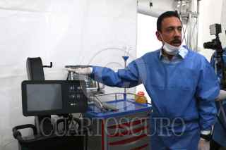 PACHUCA, HIDALGO, 28MARZO2020.- El gobernador de Hidalgo, Omar Fayad, dio positivo al diagnóstico de Coronavirus Covid-19, por lo que fue puesto en cuarentena en su domicilio. En la imagen, el mandatario durante el recorrido del Hospital Inflable instalado en la explana de la Plaza Bicentenario para tratar los casos de Covid-19. FOTO: ARCHIVO /ROGELIO MORALES /CUARTOSCURO.COM