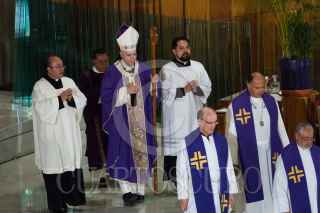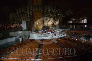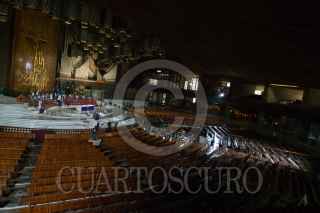 CIUDAD DE MÉXICO, 29MARZO2020.- El Arzobispo Primado de México, Carlos Aguiar Retes, encabezó la misa en la Basílica de Guadalupe, la cual fue a puerta cerrada, en la mayoría de las iglesias las liturgias se han cancelado debido a la alerta sanitaria por el Covid-19. Ayer por la tarde las autoridades reportaron más de 800 casos positivos y 16 defunciones por Coronavirus. FOTO: MOISÉS PABLO/CUARTOSCURO.COM