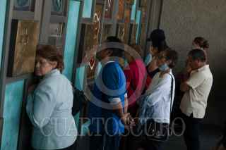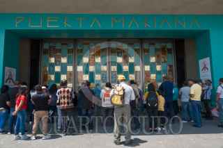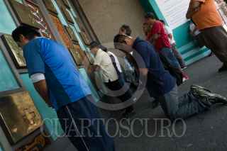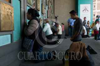 CIUDAD DE MÉXICO, 29MARZO2020.- Feligreses escuchan la misa en la Basílica de Guadalupe desde una de sus puertas. Las cuales permanecen cerradas tras la activación de la Fase 2 de Covid-19, sin embargo, muchos creyentes acuden a los centros religiosos a pesar de que una de las recomendaciones es abstenerse de acudir a lugares concurridos, ante un riesgo de contagio de Coronavirus. La Conferencia del Episcopado Mexicano ha invitado a la población a seguir la misa y las actividades de Semana Santa desde la televisión o por Internet. FOTO: MOISÉS PABLO/CUARTOSCURO.COM