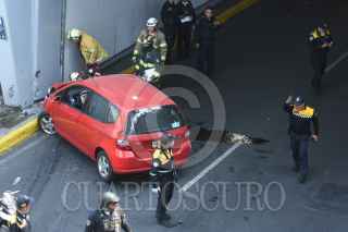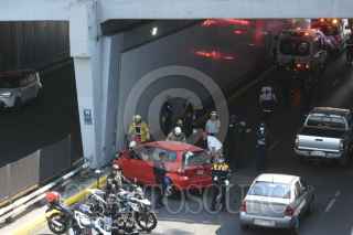 CIUDAD DE MÉXICO, 29MARZO2020.- El conductor de un automóvil compacto resultó lesionado tras impactar su vehículo en el muro de contención en el paso a desnivel de Circuito Interior y Marina Nacional, en la colonia Tlaxpana, en la alcaldía Miguel Hidalgo. FOTO: CRISTIAN HERNÁNDEZ/CUARTOSCURO.COM