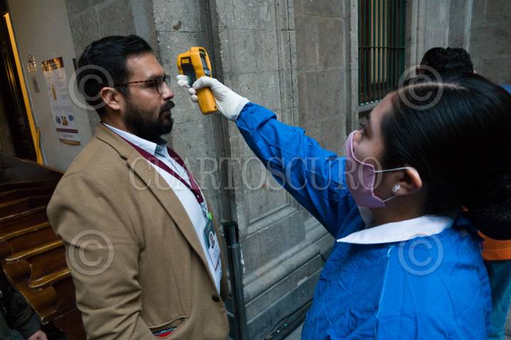 CIUDAD DE MÉXICO, 30MARZO2020.- Andrés Manuel López Obrador, Presidente de México, y Ricardo Sheffield Padilla, titular de Profeco, durante la conferencia matutina en Palacio Nacional. FOTO: MOISÉS PABLO/CUARTOSCURO.COM