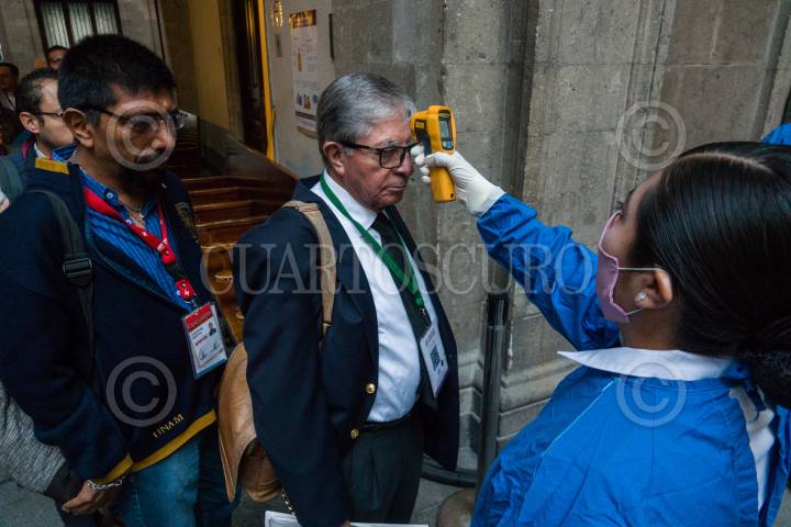 CIUDAD DE MÉXICO, 30MARZO2020.- Andrés Manuel López Obrador, Presidente de México, y Ricardo Sheffield Padilla, titular de Profeco, durante la conferencia matutina en Palacio Nacional. FOTO: MOISÉS PABLO/CUARTOSCURO.COM