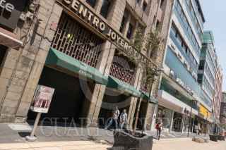 CIUDAD DE MÉXICO, 30MARZO2020.- Algunos centros joyeros de la calle de Madero han cerrado estos días de cuarentena debido a que la semana pasada uno de estos establecimientos fue asaltado, la afluencia de gente ha disminuido en las calles de centro histórico tras el llamado a la población de que se mantengan en casa debido a la alerta sanitaria por el Covid-19. Policías capitalinos realizan rondines a pie y en camionetas para mantener la seguridad de la zona. FOTO: MOISÉS PABLO/CUARTOSCURO.COM