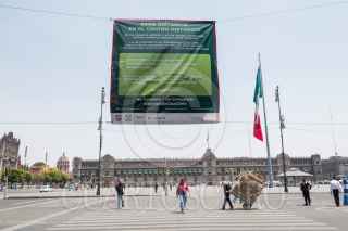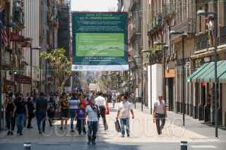 CIUDAD DE MÉXICO, 30MARZO2020.- En el Centro Histórico se observan pendones que piden a los paseantes que mantengan una sana distancia como medida sanitaria para evitar un contagio de Covid-19, con estas medidas las autoridades capitalinas pretenden un menor número de contagios por esta enfermedad que hasta el día de ayer ya cobró la vida de 20 personas. FOTO: MOISÉS PABLO/CUARTOSCURO.COM