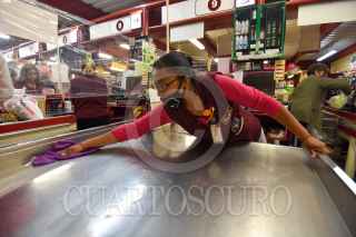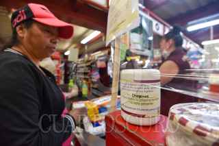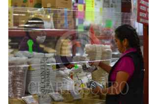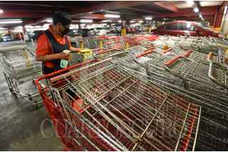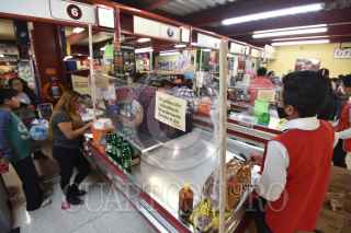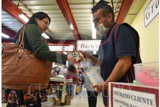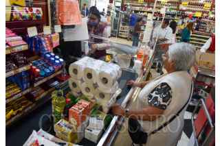 Las tiendas Garis del Estado de México implementaron una serie de medidas de seguridad ante la contingencia por COVID-19, para protección de sus empleados y clientes, desde el uso de gel antibacterial, cubrebocas y guantes, hasta el uso de player plástico como barrera en cajas de cobro, y en el área de semillas y frutas, limpieza de carritos constantemente y de las áreas de trabajo, pequeñas marcas para tomar distancia entre cada cliente, así como diversos letreros en donde informan sobre las medidas tomadas; además colocaron alcancías en todas las cajas de cobro para que puedan dejarse las propinas para poder ayudar a los empacadores que son personas de la tercera edad y que fueron enviados a sus casas para no ponerlos en riesgo, y la empresa les dio un apoyo económico aparte. FOTO: CRISANTA ESPINOSA AGUILAR /CUARTOSCURO.COM