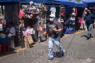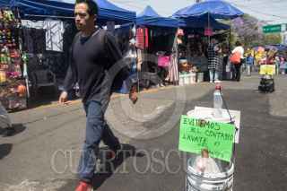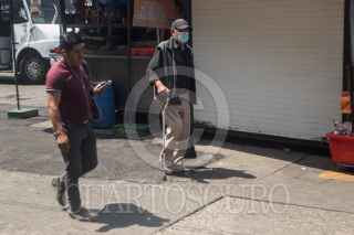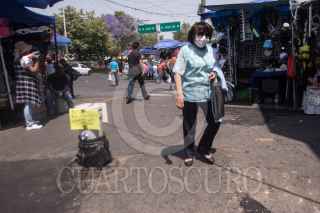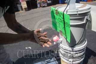 CIUDAD DE MEXICO. 30MARZO2020.- Comerciantes que se encuentran en las afueras de la estación del metro tacubaya, a traves de un acuerdo con la alcaldía de Miguel Hidalgo acordaron ordenar sus puestos para poder regresar a su fuente de trabajo. Debido al accidente de los trenes del metro que chocaron ellos no pudieron vender por dos semanas. A partir de hoy pusieron agua y jabón para que la gente que lo quiera pueda lavarse las manos. FOTO: VICTORIA VALTIERRA/CUARTOSCURO.COM