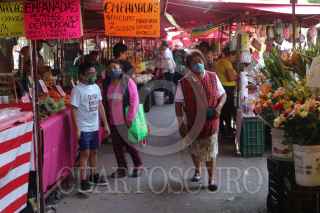 CIUDAD DE MÉXICO, 30MARZO2020.- Ante la pandemia del Coronavirus comerciantes de diferentes productos como alimentos, ropa y calzado se ven afectos por la baja venta. A pesar de que el subsecretario de Salid, Hugo López Gatell, informó a la población de quedarse en casa para no propagar más el virus, adultos mayores y familias acuden a comprar en los tianguis y mercados. FOTO: GRACIELA LÓPEZ /CUARTOSCURO.COM