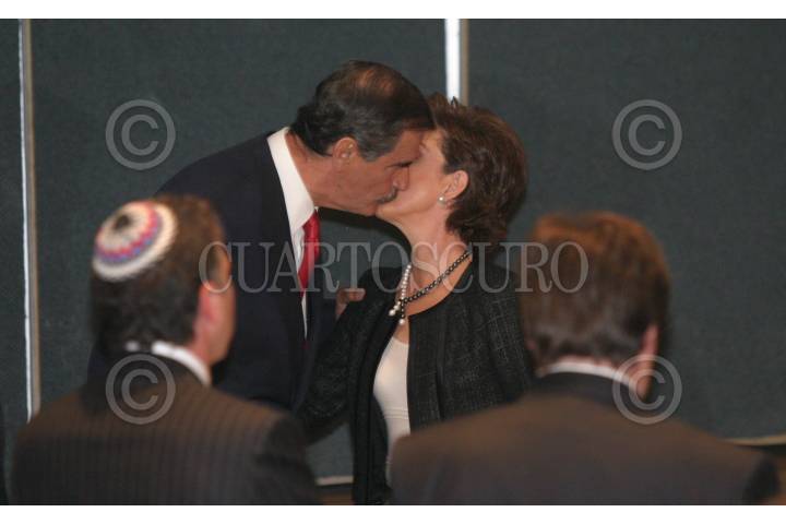 MEXICO, D.F., 23ENERO2006.- Vicente Fox Quesada, Presidente de la República y Marta Sahagún, esposa del mandatario, saludan a niños al término de comida con los miembros de la comunidad judía en el Centro Deportivo Israelita. FOTO: Moisés Pablo/CUARTOSCURO.COM