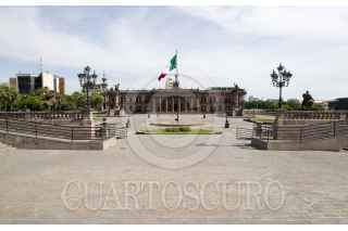 MONTERREY, NUEVO LEÓN, 31MARZO2020.- Calles principales del centro de la ciudad de Monterrey lucen casi vacías, así como comercios cerrados en el primer cuadro de la ciudad y la Macroplaza, un lugar muy concurrido a todas horas debido a la cuarentena por el coronavirus covid-19. FOTO: GABRIELA PÉREZ MONTIEL / CUARTOSCURO.COM