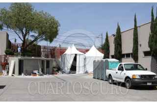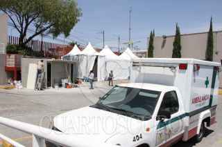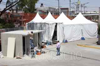 CIUDAD DE MÉXICO DE MÉXICO, 31MARZO2020.- Trabajadores laboran a marcha forzada la instalación de los módulos externos y provisionales de primer contacto para la atención de casos por COVID-19, en el hospital Enrique Cabrera, esto luego de la declaratoria de Emergencia Sanitaria emitida por el gobierno. FOTO: ROGELIO MORALES /CUARTOSCURO.COM
