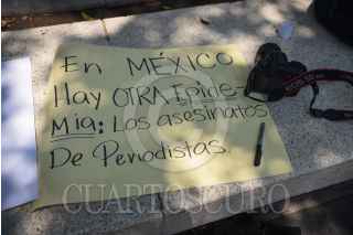 VERACRUZ,VERACRUZ, 31MARZO2020.- Periodistas se manifiestan por el asesinato de la reportera María Elena Ferral Hernández, quien fue atacada a balazos en la ciudad de Papantla y posteriormente falleció en el Hospital General de Poza Rica. FOTO: VICTORIA RAZO /CUARTOSCURO.COM