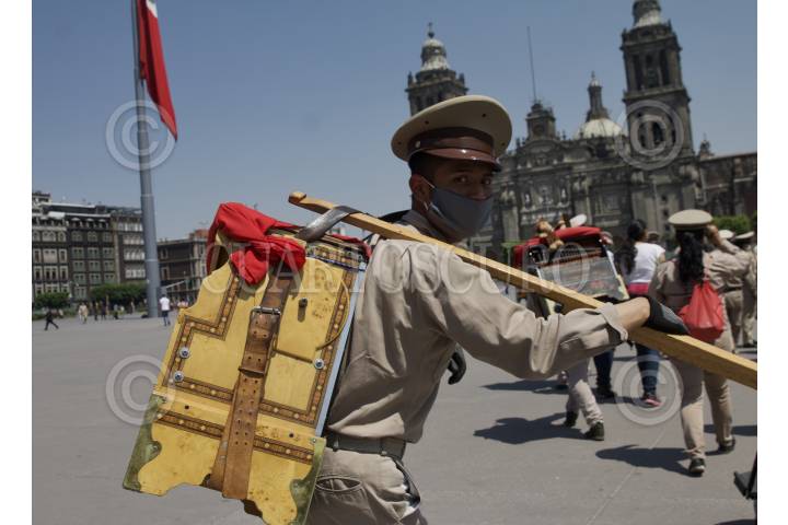 CIUDAD DE MÉXICO, 31MARZO2020.- Organilleros del Centro Histórico de la Ciudad, se manifestaron en el Zócalo capitalino para pedir apoyo del Gobierno por el virus COVID-19. Los organilleros continúan trabajando, no cuentan con seguro ya que son del sector de comercio informal y están siendo afectados por la baja afluencia de personas. FOTO: ANDREA MURCIA/CUARTOSCURO.COM
